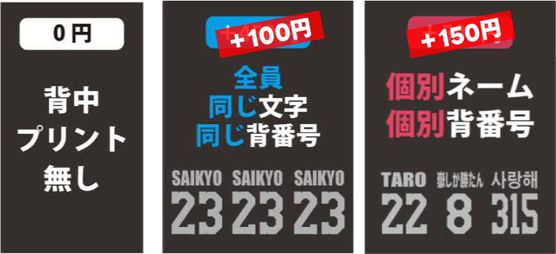 文字や番号のマーキング色です(シャツの色は変更できません)