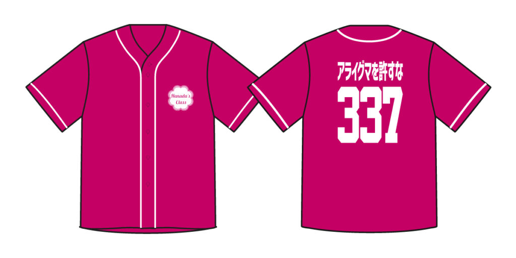 トロピカルピンクホワイトベースボールシャツ/野球ユニフォーム風クラスTシャツ