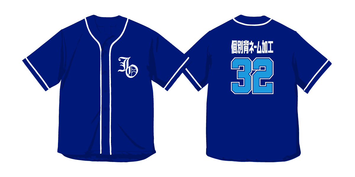マリンブルーベースボールシャツ/野球ユニフォーム風クラスTシャツ