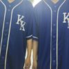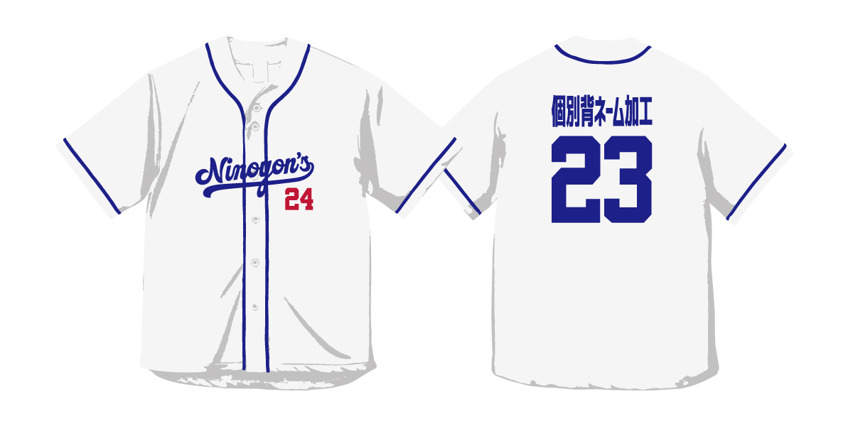 ホワイトマリンブルーベースボールシャツ/野球ユニフォーム風クラスTシャツ