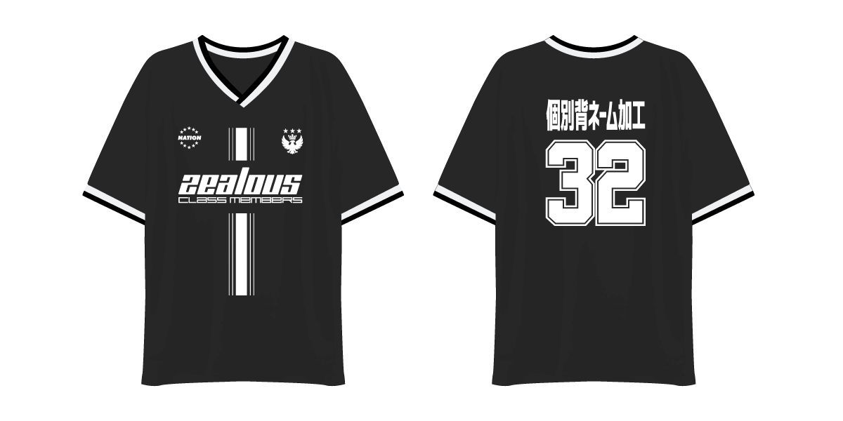 デザイン例 黒色生地がカッコいいリブ付きルーズタイプのゲームシャツ。ユニフォームドライ素材でクラスTシャツとして人気急上昇中!ビックシルエットが可愛く、リブ付きだからオシャレにも見えて映える!価格も激 ...