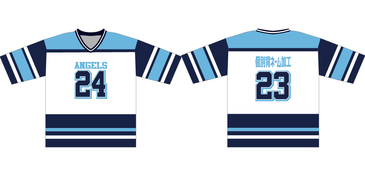 新色のブルーネイビーホッケーシャツ💙暑い季節でも爽やかに着こなせる👍